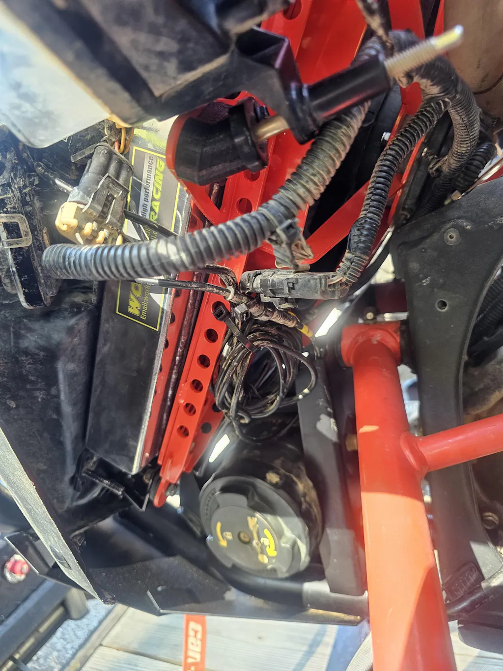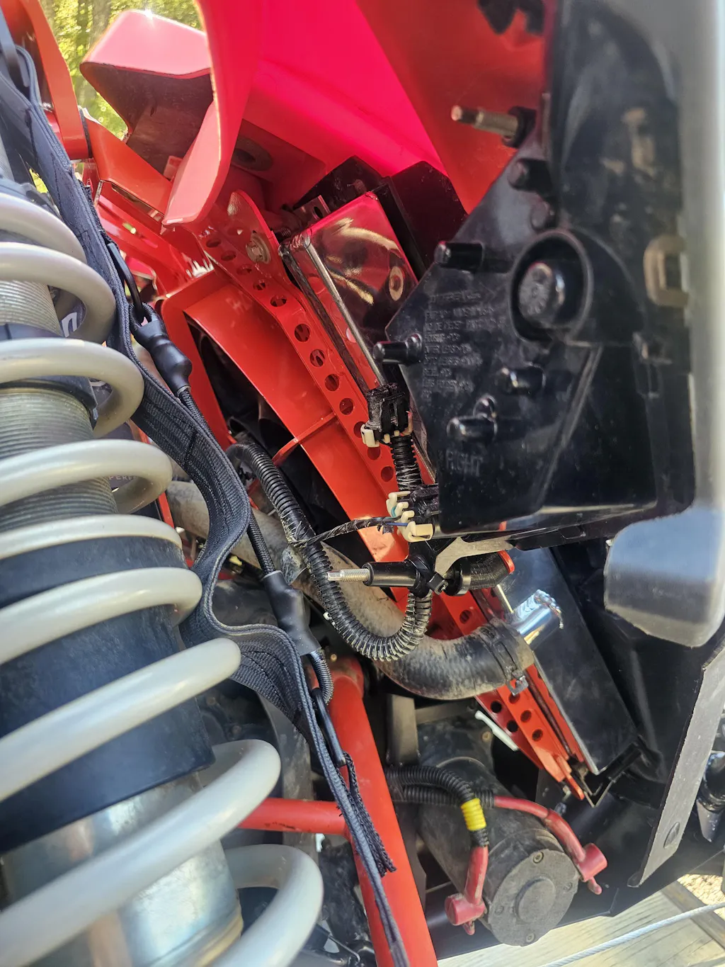Improve the rigidity of your Can-Am X3 front end with the Fastlab Reinforced Fan Shroud. Not only can you replace your weak plastic OEM fan shroud, but reinforce the front end at the same time. The ribbed steel plate links the front bumper bulkhead to the upper shock tower. Never worry about tweaked radiators and broken fans again. This shroud coordinates with other gusset kits to even further reinforce the front end.